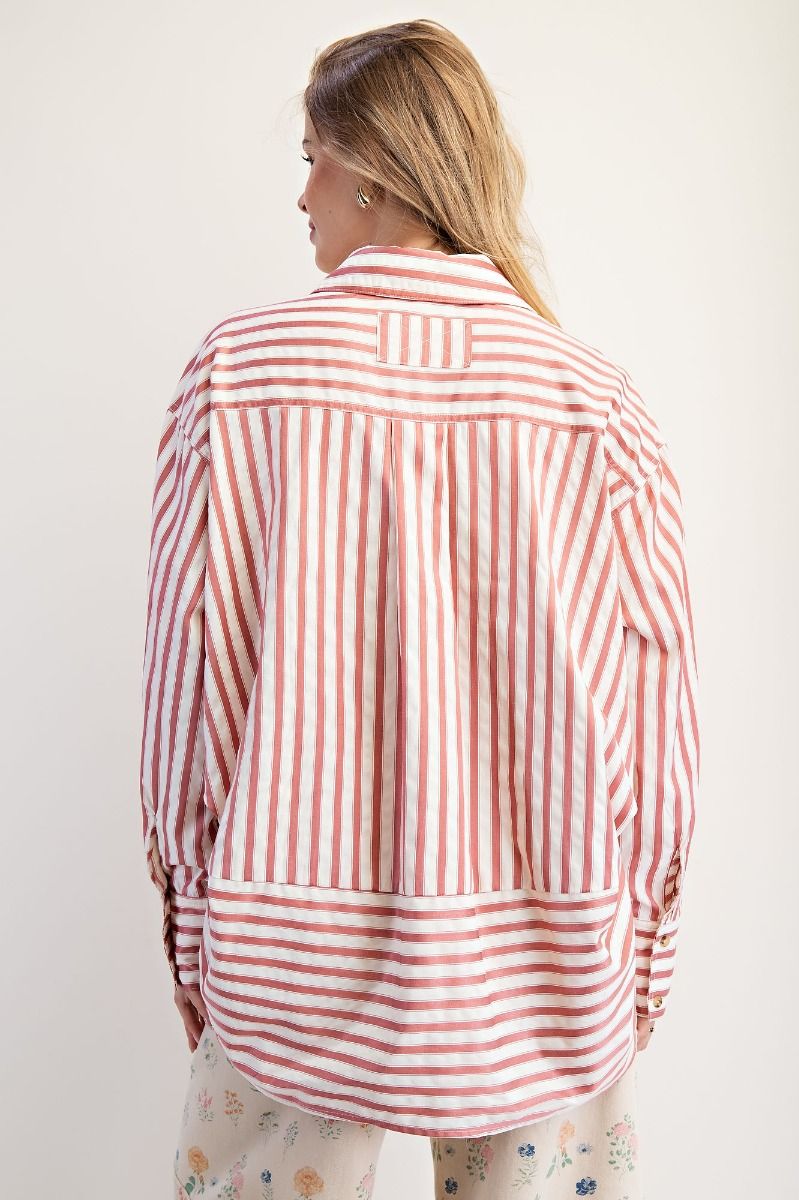The chocolate richness of this shirt is unreal! Features a relaxed fit, mineral wash, allover floral print, half button front, chest pockets with frayed flaps, rounded high-low hemline, dropped shoulders,...